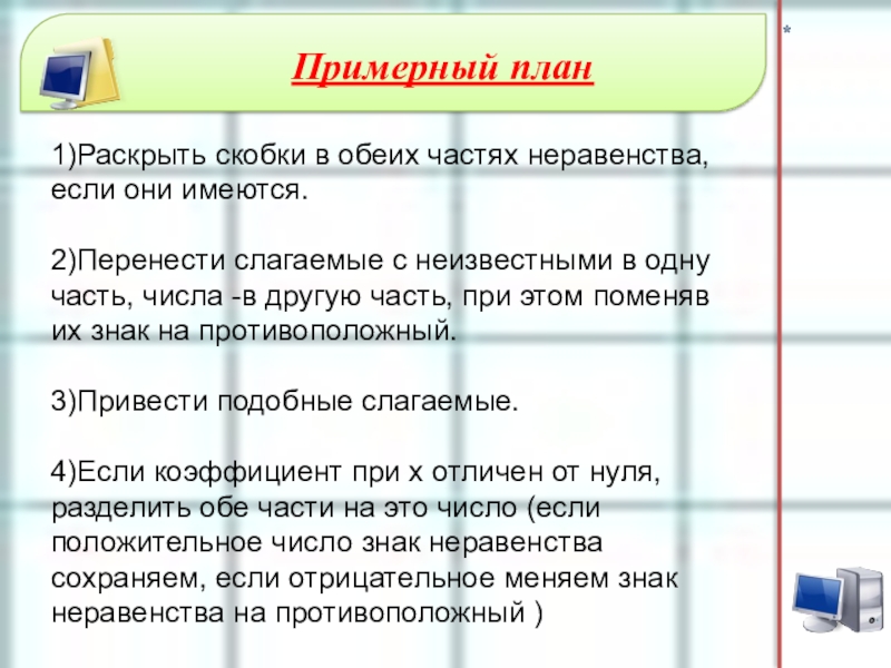 Правило 3.Обе части неравенства можно умножить или разделить на одно и то же отрицательное число, изменив при этом знак неравенства на противоположный.