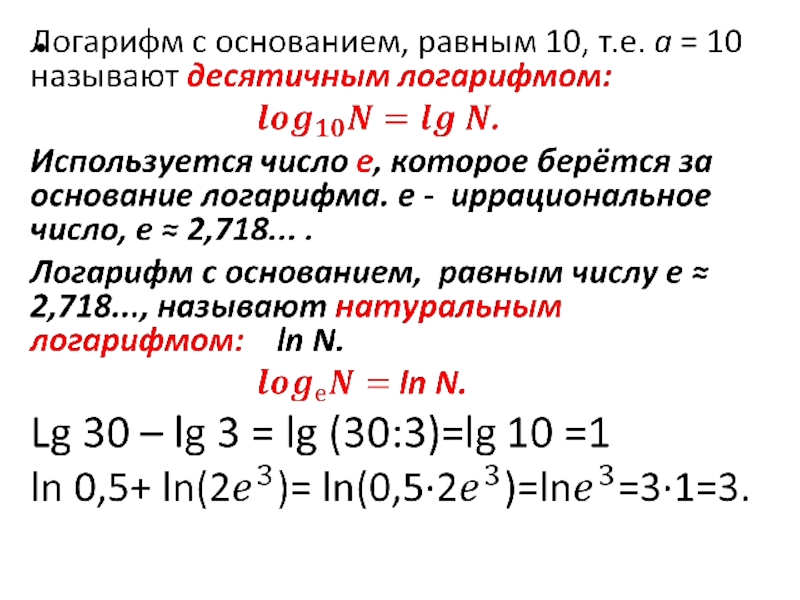 Презентация, доклад по алгебре на тему Логарифм и его свойства