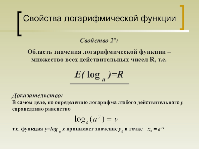 В самом деле, по определению логарифма любого действительного y справедливо равенство