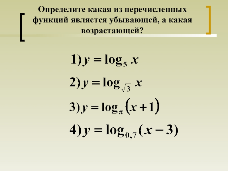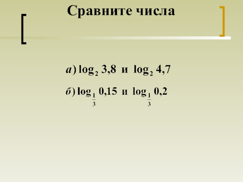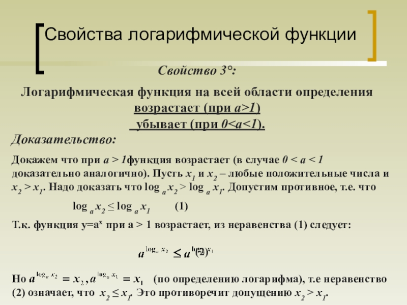 Логарифмическая функция на всей области определения возрастает (при а>1)