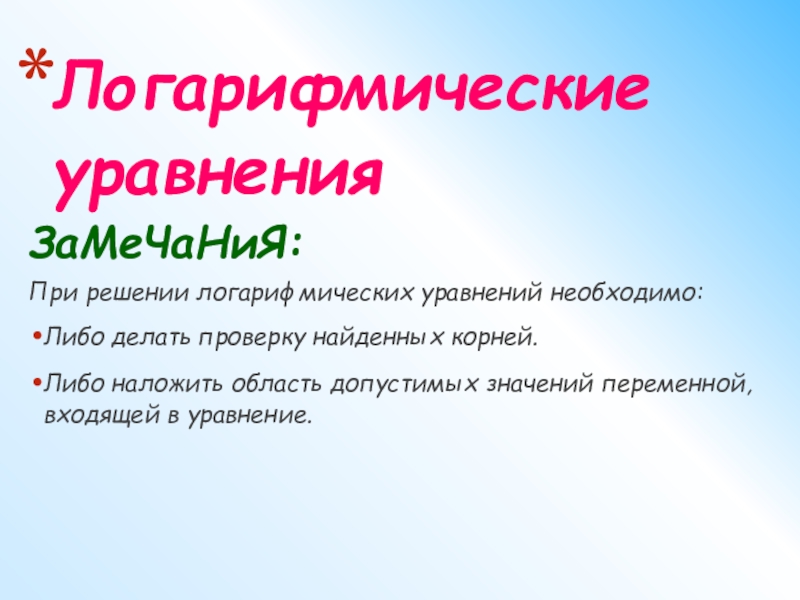 Логарифмические уравнения.