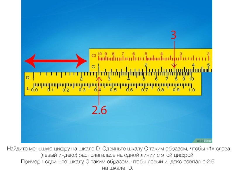 Пример : сдвиньте шкалу C таким образом, чтобы левый индекс совпал с 2.6