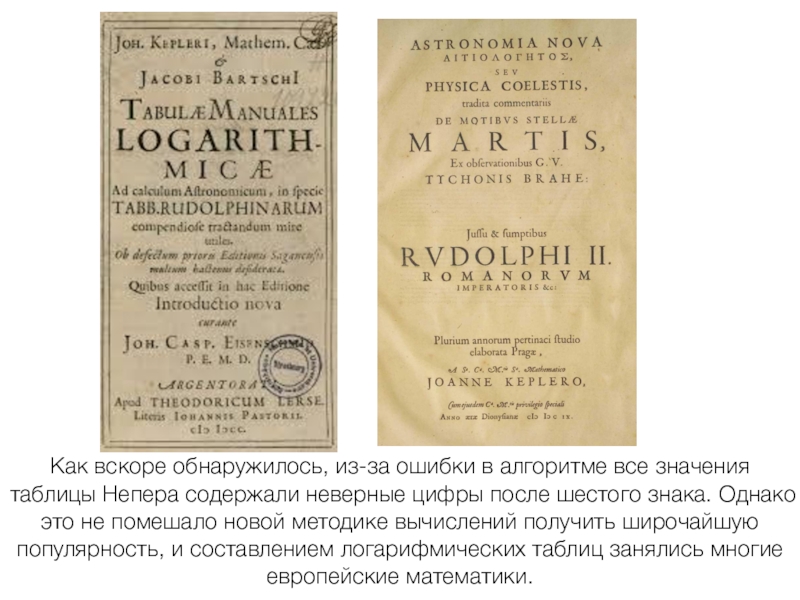 Слайд 6Как вскоре обнаружилось, из-за ошибки в алгоритме все значения таблицы Непера