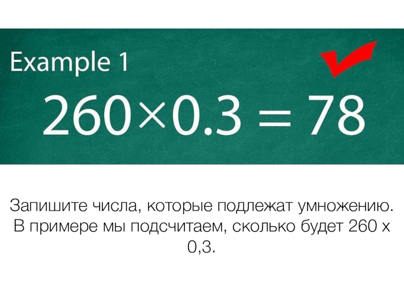 Пример : чтобы подсчитать 260 x 0.3, начинайте вместо этого с 2.6 x 3.