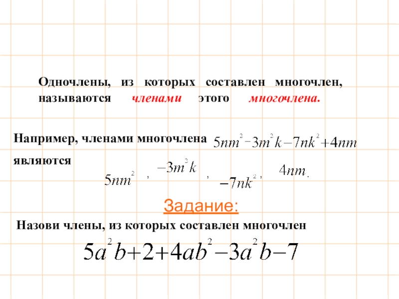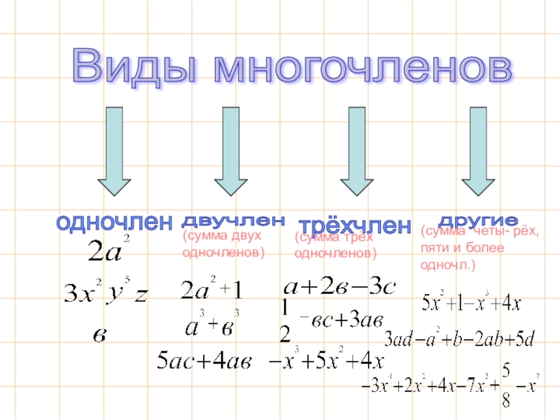 (сумма четы- рёх, пяти и более одночл.)