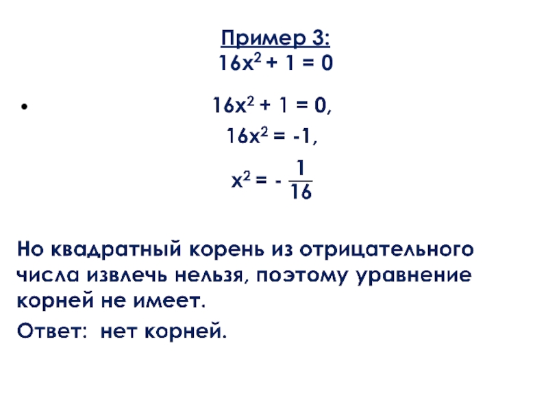 Слайд 18Уравнение вида ax2 + с = 0, где с ≠ 0