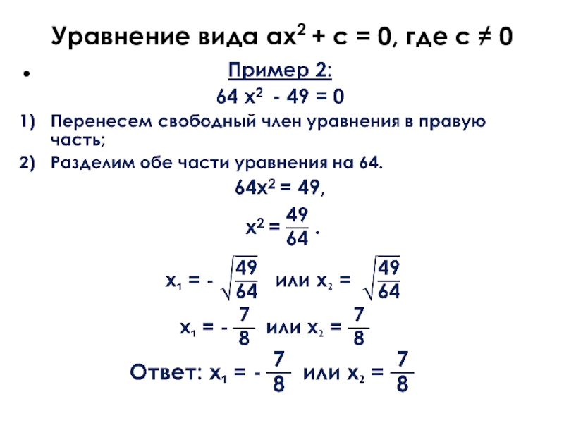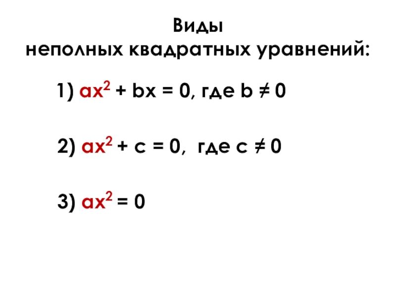 2) ax2 + c = 0, где с ≠ 0