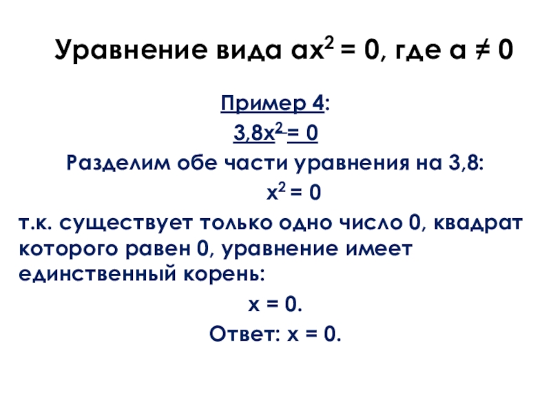 Слайд 21 Уравнение вида ax2 = 0, где а ≠ 0