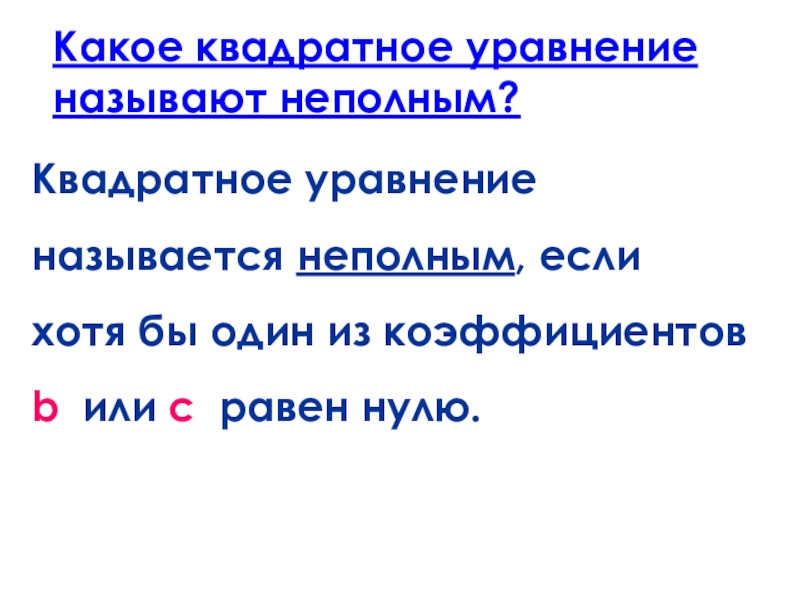 Квадратное уравнение называется неполным, если
