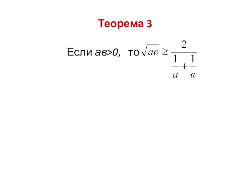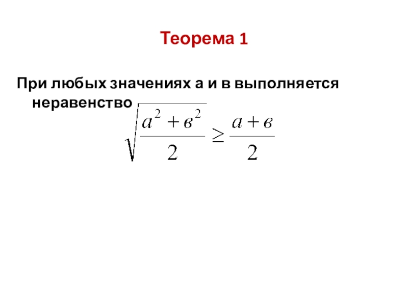 Теорема 2 (неравенство Коши для двух чисел)При любых неотрицательных значениях а и в выполняется неравенство