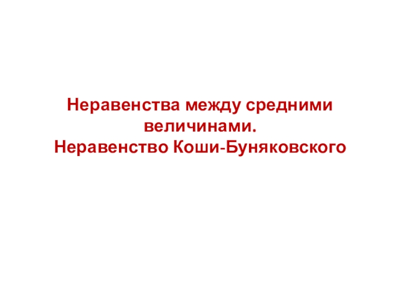 Слайд 1Неравенства между средними величинами. Неравенство Коши-Буняковского
