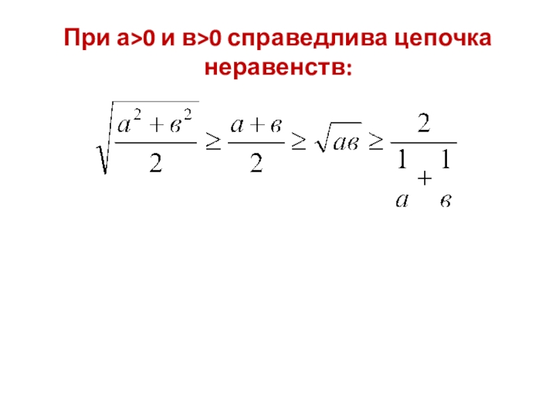 Слайд 11При а>0 и в>0 справедлива цепочка неравенств: