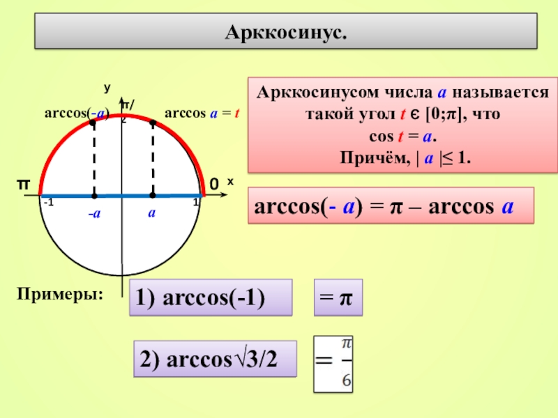arccos(- а) = π – arccos а