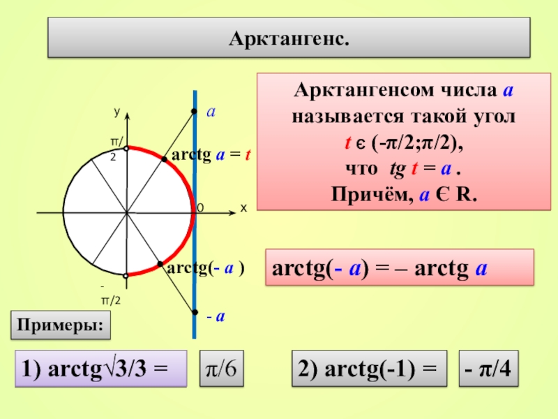 arctg(- а) = – arctg а