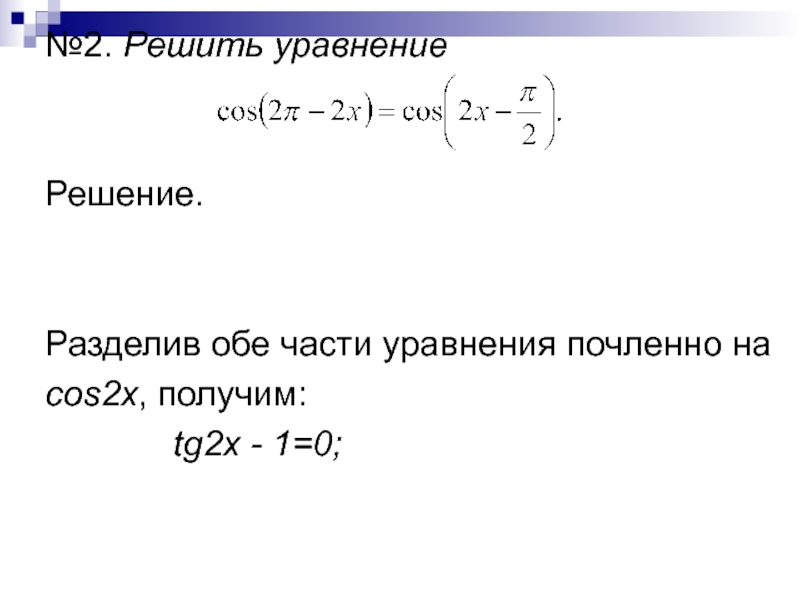 Если коэффициент а отличен от нуля, то есть в уравнение содержится член sin2x с каким-то коэффициентом, отличным от нуля, то, рассуждая, как и выше, нетрудно убедиться в том, что при интересующих нас значениях переменной cosx не обращается в нуль, а потому можно обе части уравнения разделить почленно на cos2x.