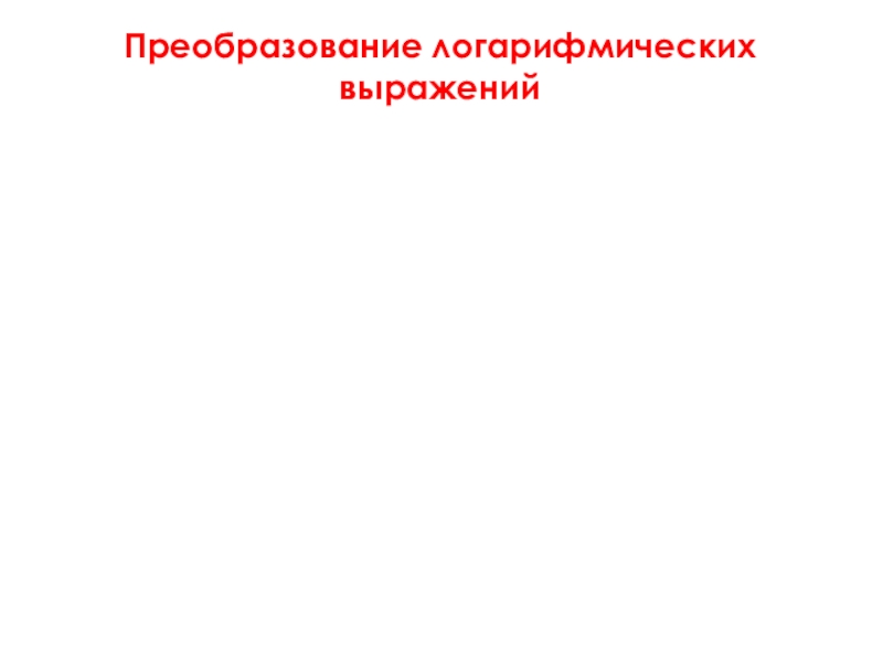 Слайд 5Преобразование логарифмических выражений