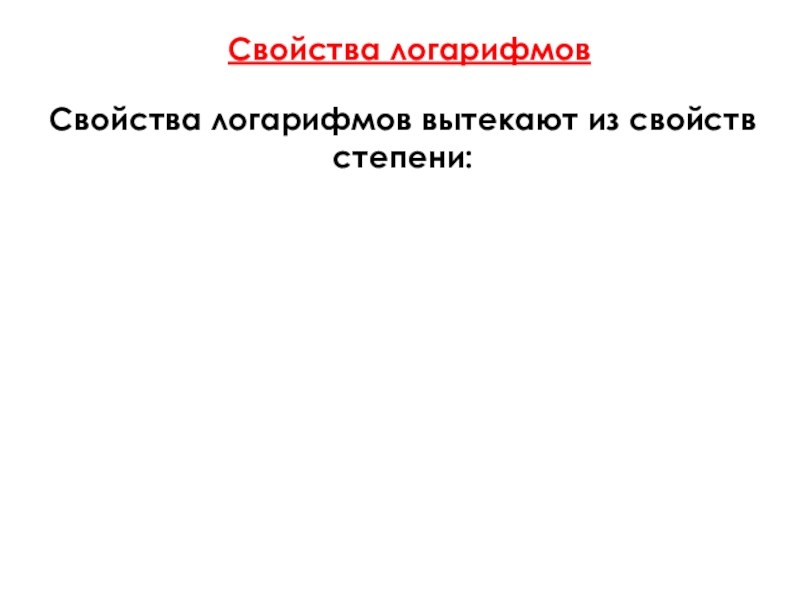 Свойства логарифмовСвойства логарифмов вытекают из свойств степени: