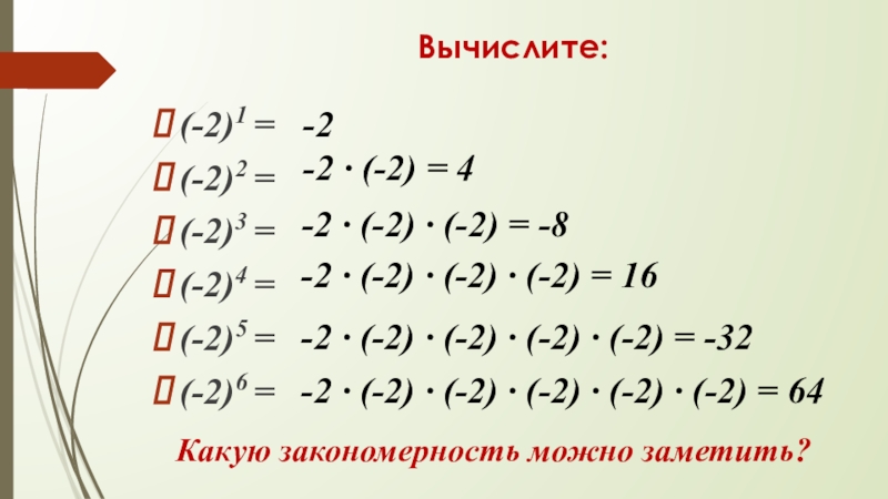 -2 ∙ (-2) ∙ (-2) ∙ (-2) ∙ (-2) ∙ (-2) = 64