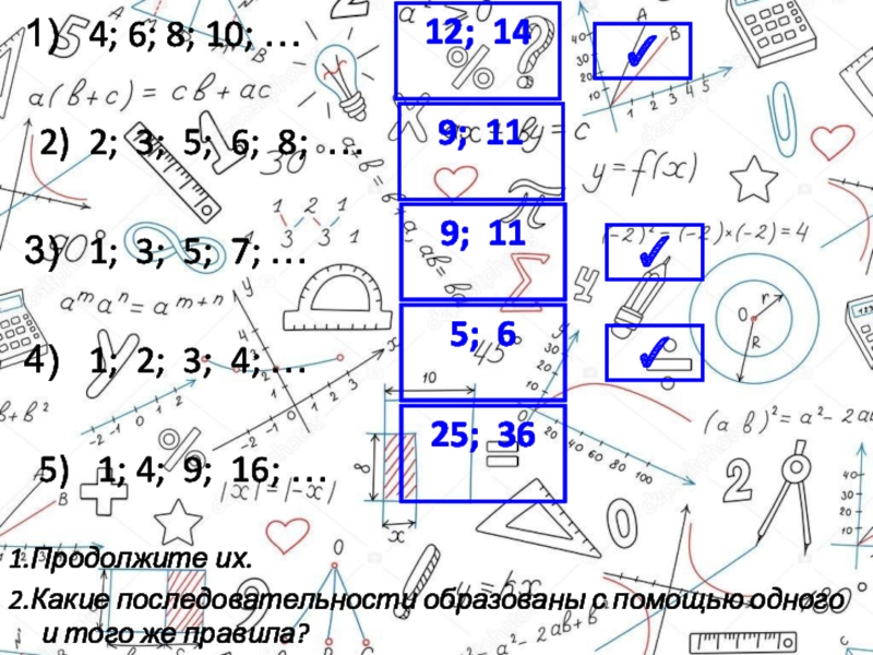 2.Какие последовательности образованы с помощью одного и того же правила?