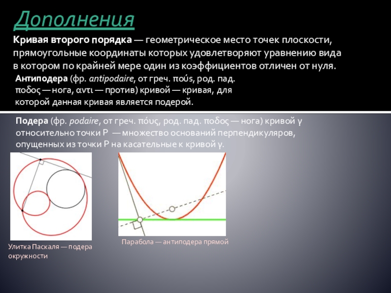 Подера (фр. podaire, от греч. πόυς, род. пад. ποδος — нога) кривой γ относительно точки P — множество оснований перпендикуляров, опущенных из точки P на касательные к кривой γ.