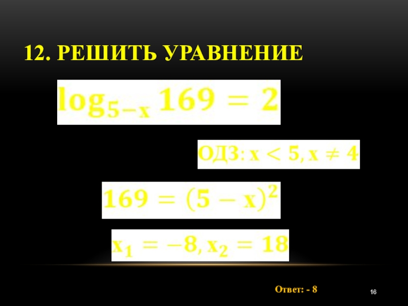 12. Решить уравнениеОтвет: - 8