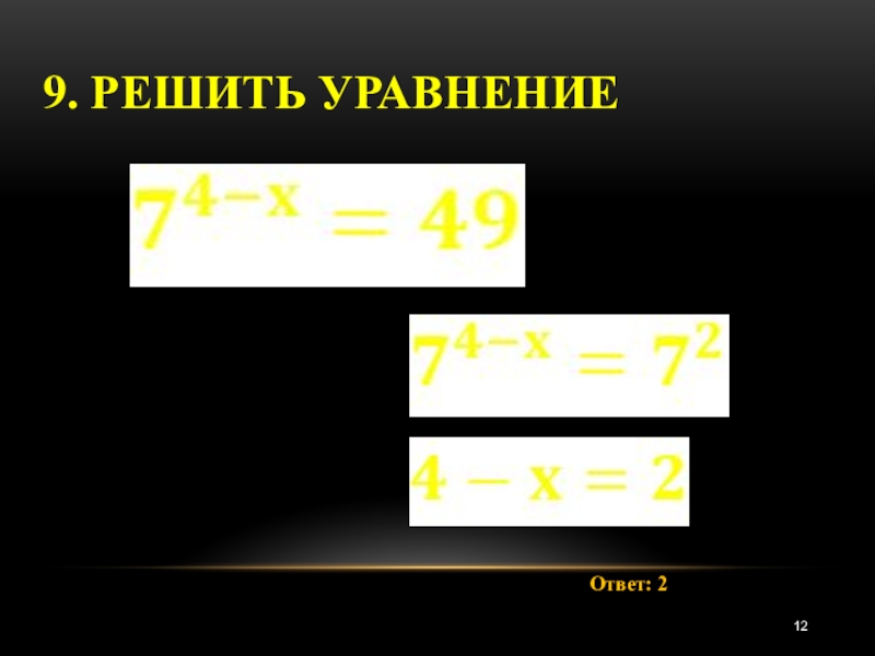 9. Решить уравнениеОтвет: 2