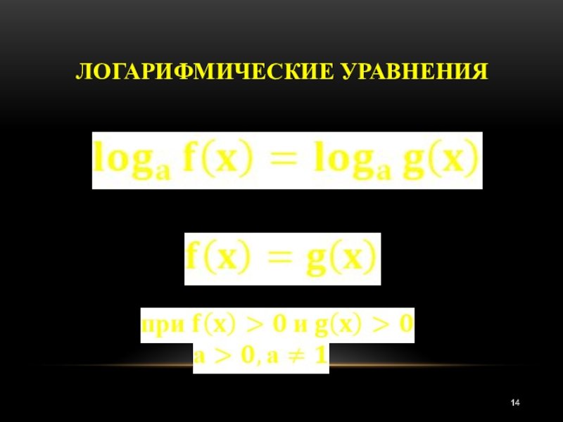 Слайд 14Логарифмические уравнения