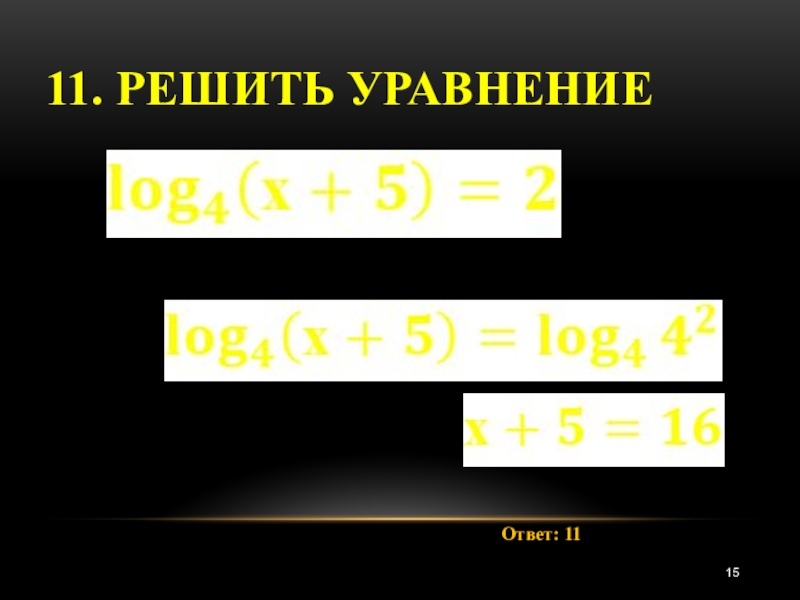 11. Решить уравнение Ответ: 11