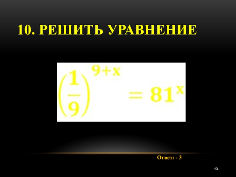 10. Решить уравнение Ответ: - 3