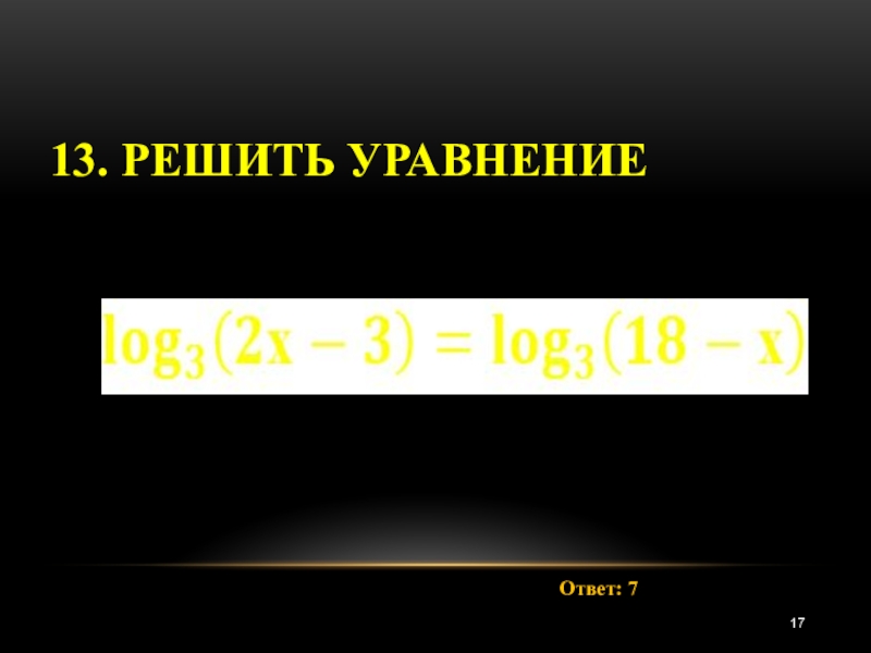 13. Решить уравнениеОтвет: 7