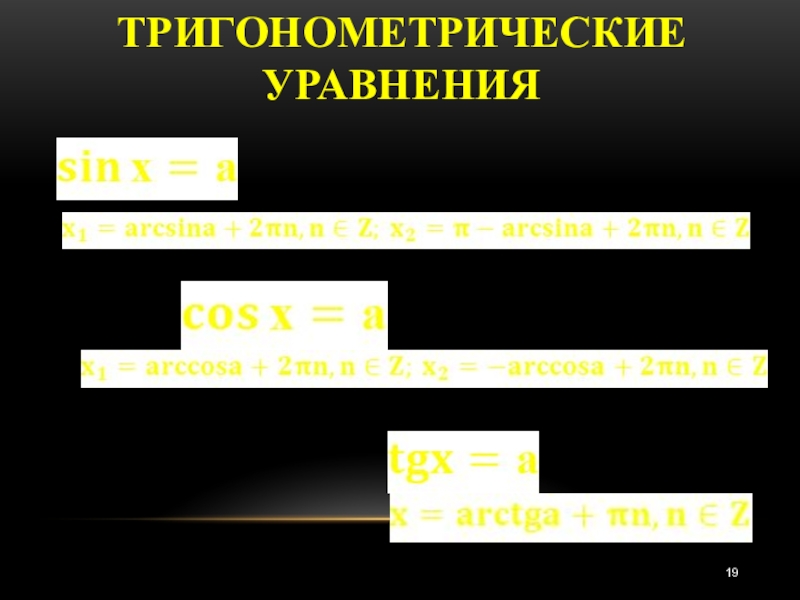 Слайд 19Тригонометрические уравнения