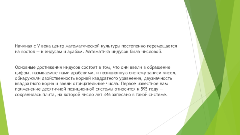 Слайд 6Начиная с V века центр математической культуры постепенно перемещается на восток