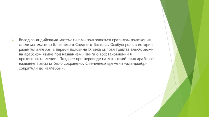 Слайд 8Вслед за индийскими математиками пользоваться правилом положения стали математики Ближнего и