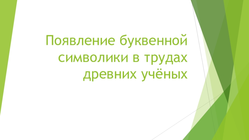Слайд 1Появление буквенной символики в трудах древних учёных