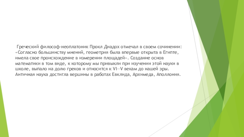 Слайд 2 Греческий философ-неоплатоник Прокл Диадох отмечал в своем сочинении: «Согласно большинству