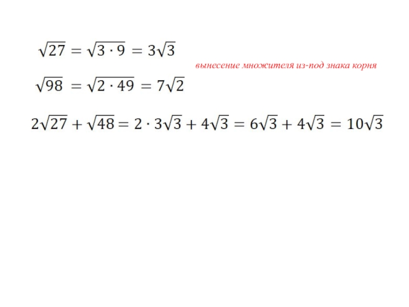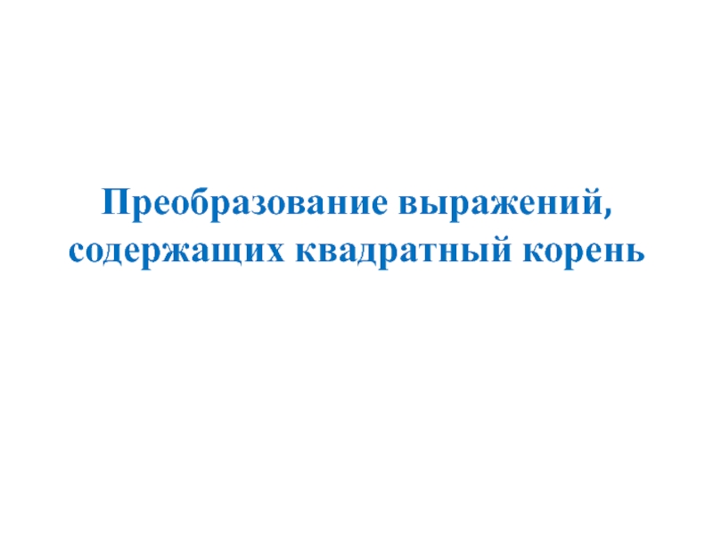 Слайд 1Преобразование выражений, содержащих квадратный корень