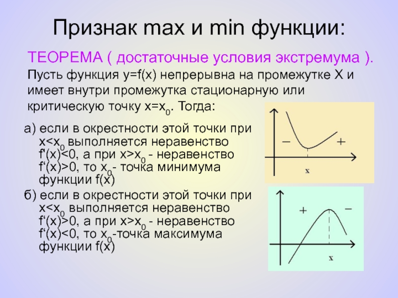 ТЕОРЕМА ( достаточные условия экстремума ).