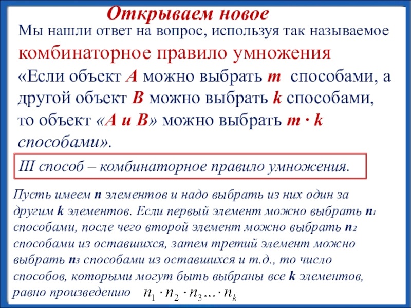 Мы нашли ответ на вопрос, используя так называемое комбинаторное правило умножения