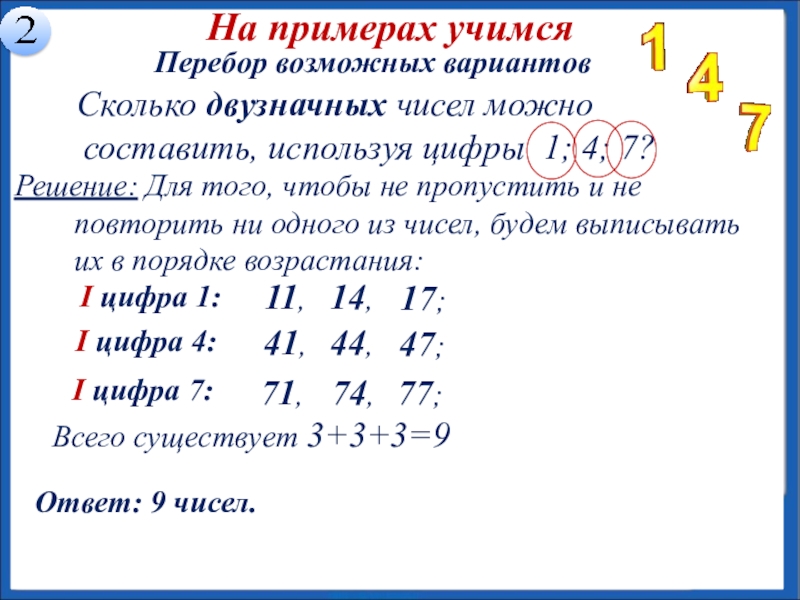 Сколько двузначных чисел можно составить, используя цифры 1; 4; 7?