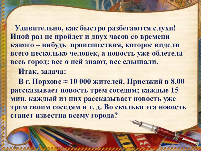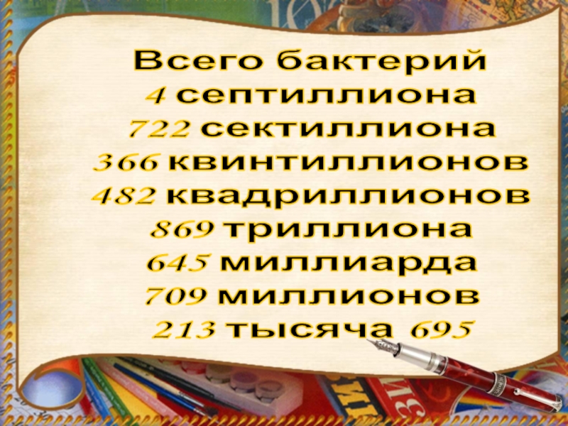 Это сайт презентаций, где можно хранить и обмениваться своими презентациями, докладами, проектами, шаблонами в формате PowerPoint с другими пользователями. Мы помогаем школьникам, студентам, учителям, преподавателям хранить и обмениваться учебными материалами.