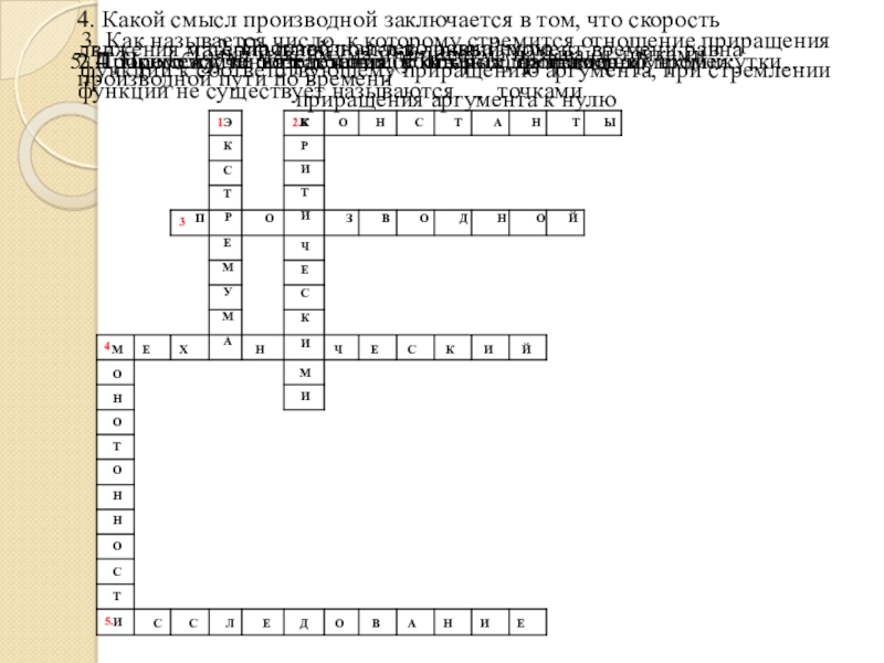 3. Как называется число, к которому стремится отношение приращения функции к соответствующему приращению аргумента, при стремлении приращения аргумента к нулю