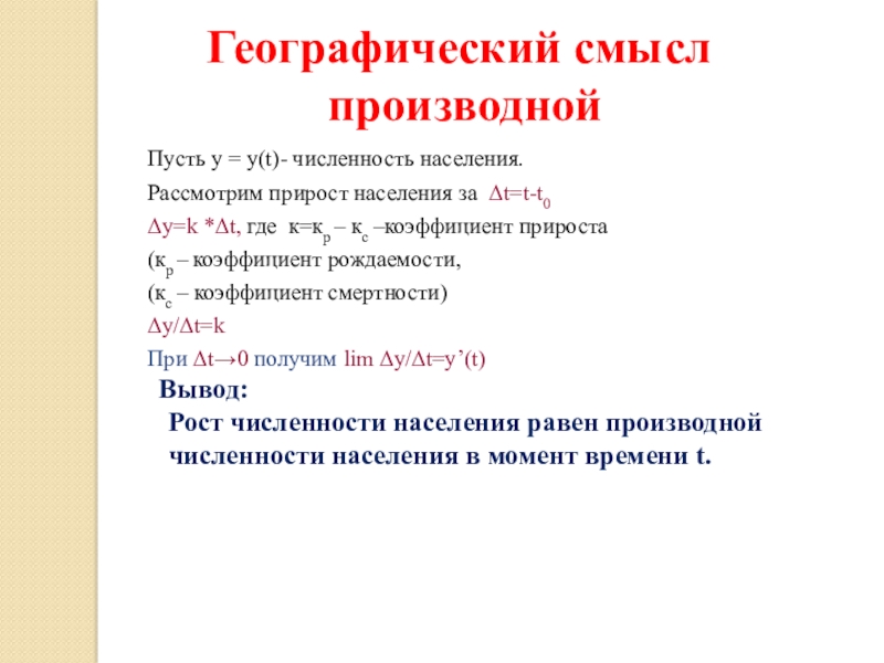4. Какой смысл производной заключается в том, что скорость движения материальной точки в данный момент времени равна производной пути по времени