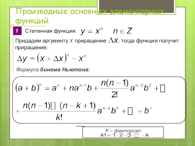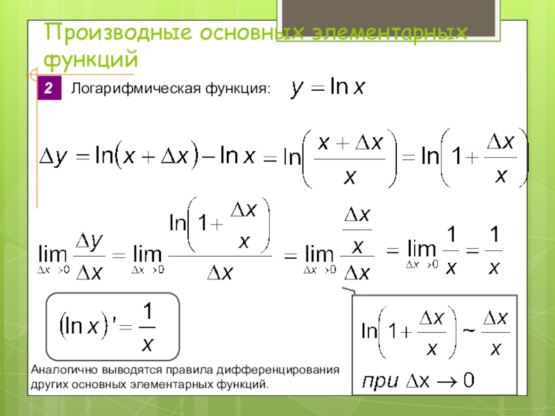Производная такой функции находится только с помощью логарифмического дифференцирования.