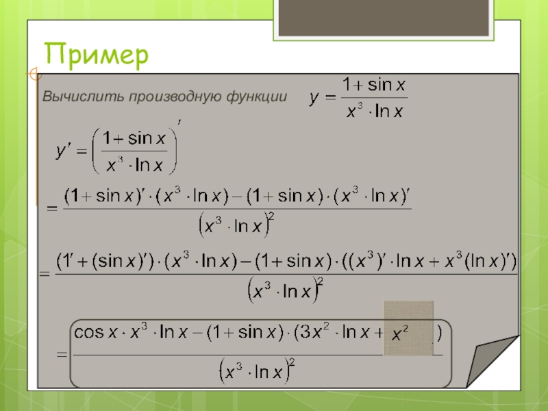 Для нахождения производной неявно заданной функции необходимо продифференцировать уравнение по х, рассматривая при этом y как функцию от х, и полученное выражение разрешить относительно производной.