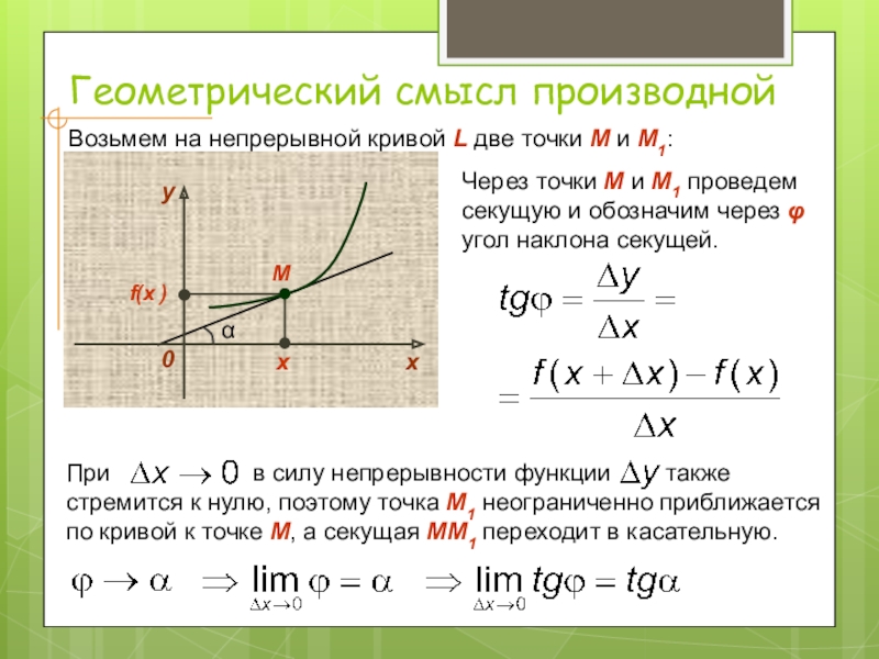 Через точки М и М1 проведем секущую и обозначим через φ угол наклона секущей.