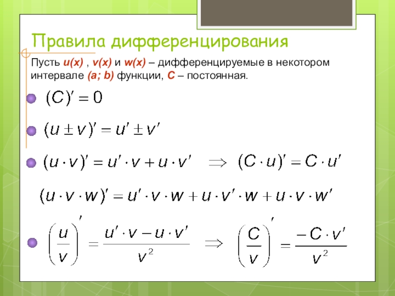 Пусть u = u(x) и v = v(x) – дифференцируемые функции.