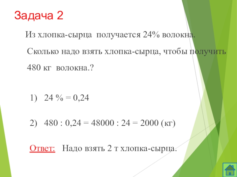 Из хлопка-сырца получается 24% волокна. Сколько надо взять