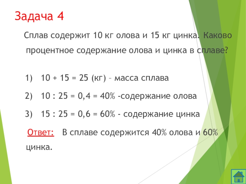 2) 10 : 25 = 0,4 = 40% -содержание олова