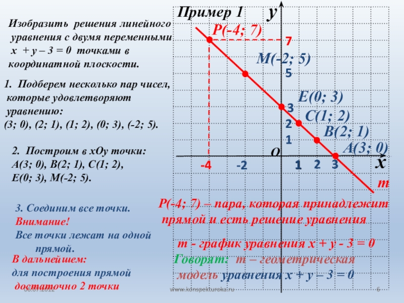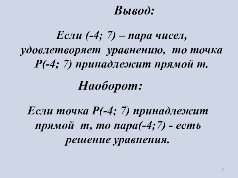 Если точка Р(-4; 7) принадлежит прямой т, то пара(-4;7) - есть решение уравнения.
