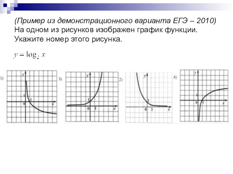 (Пример из демонстрационного варианта ЕГЭ – 2010) На одном из рисунков изображен график функции. Укажите номер этого